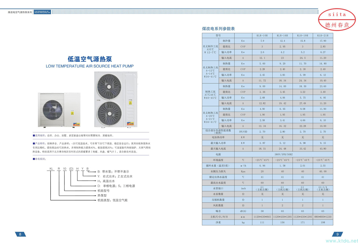 超低溫空氣源熱泵維護費用低。由于空氣源熱泵機組的各機頭型式規格相同,既可互為備用,又能使維修備件量減至***少,具有較高的運行可靠性和通用性。由于采用微電腦進行控制,使多機頭機組的復雜操作管理變得簡單易行。