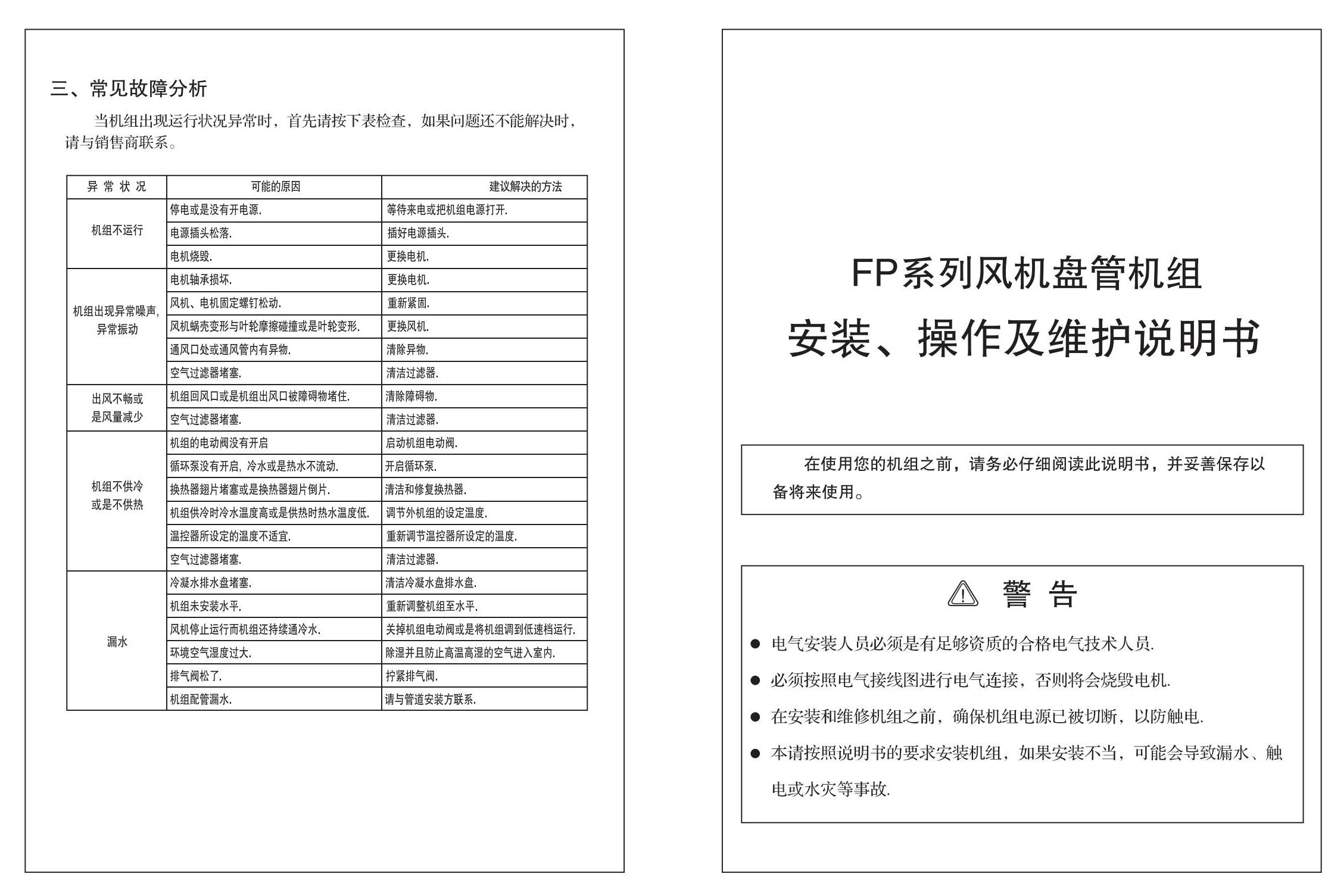 臥式暗裝風(fēng)機(jī)盤管使用說明書