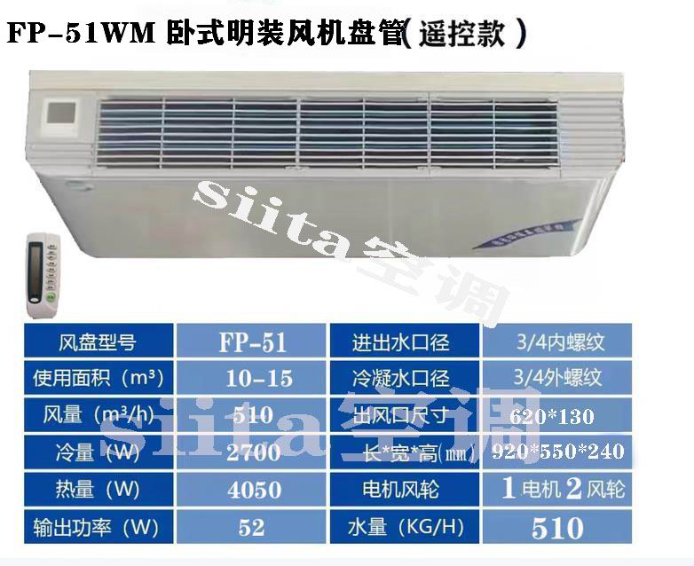 FP-51WM 是臥式明裝風機盤管,額外風量 510m3/h,適配 10-15㎡空間,低噪易裝、外觀適配裝飾,常用于住所、工作、商鋪等需靈敏溫控的場景。以下是具體參數(shù)與使用場景: