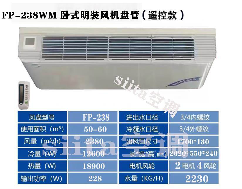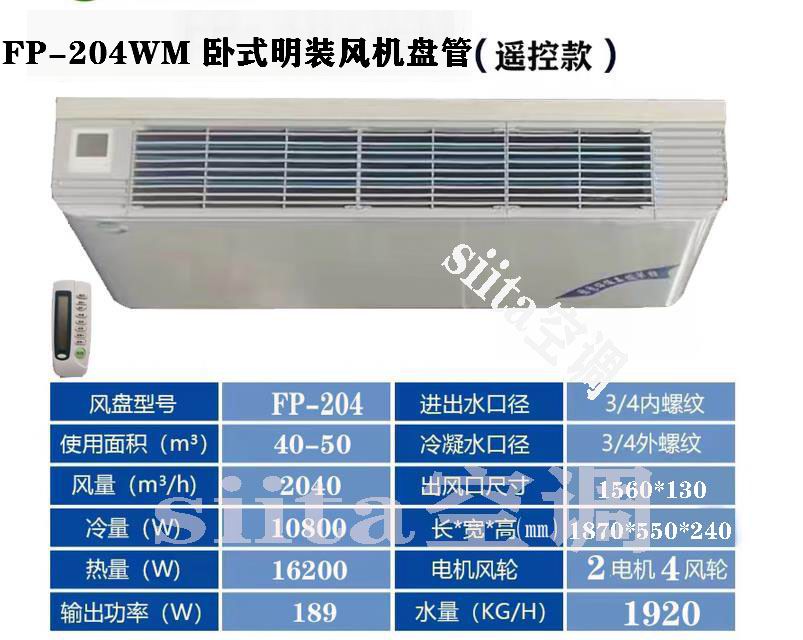 德州春意遙控款siita臥式明裝風機盤管 是一種安裝在房間上部(通常貼頂或吊掛安裝)的空調末端設備。與立式明裝一樣,其所有部件及管道均明露在室內,無需吊頂隱蔽,但它的安裝方位和氣流組織與立式完全不同。