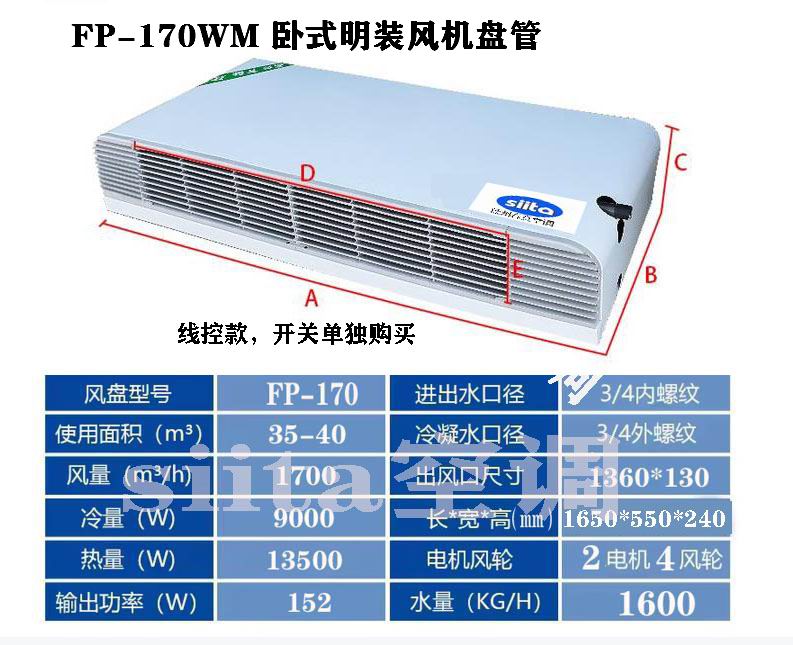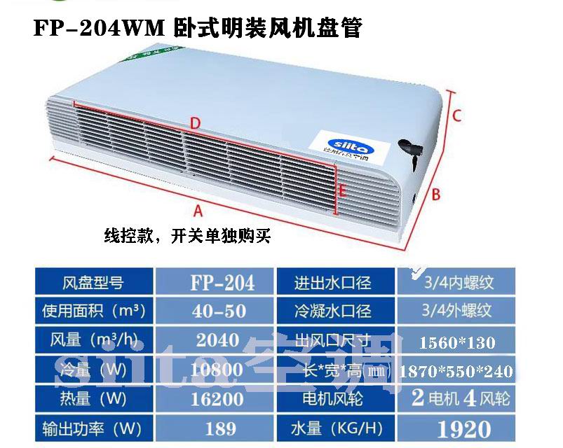 江西普通款臥式明裝風機盤管型號,參數選型表格