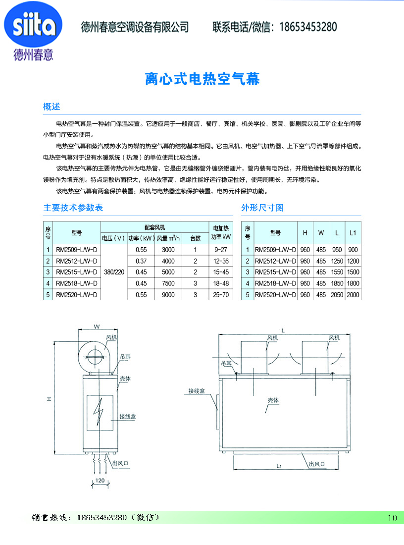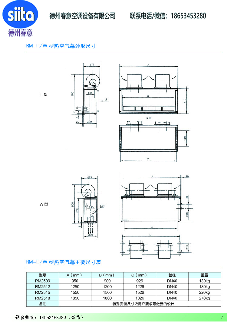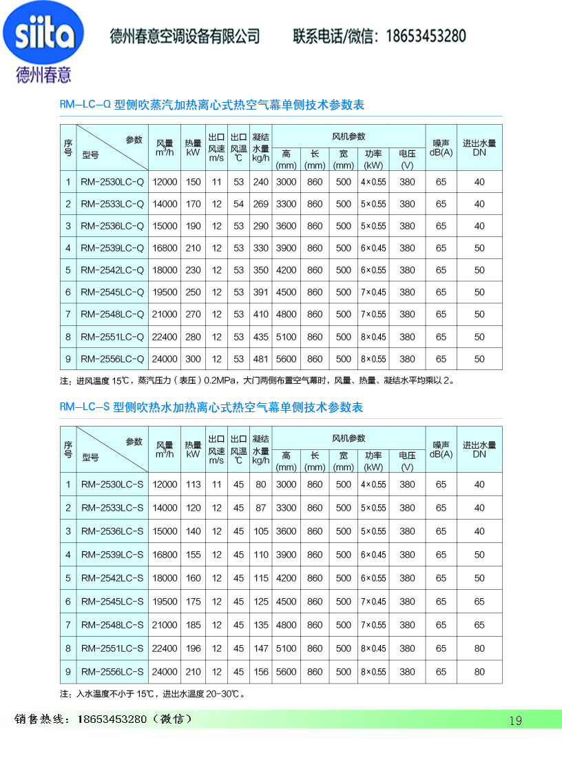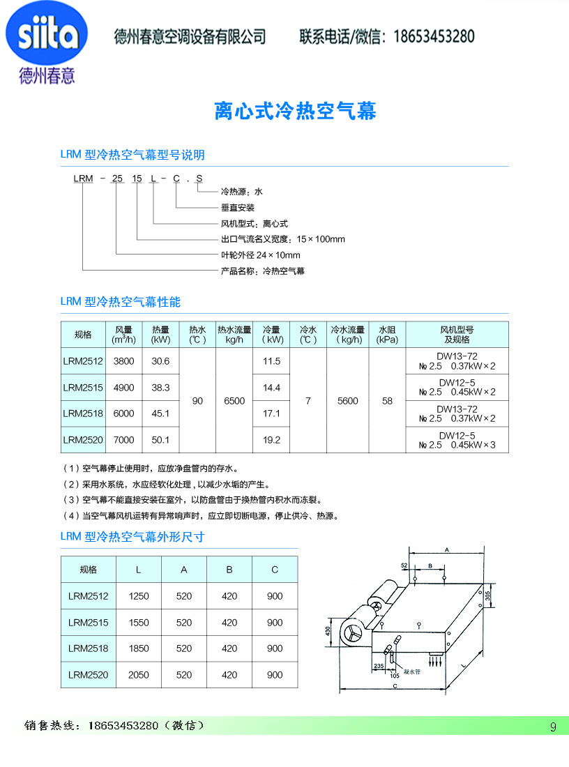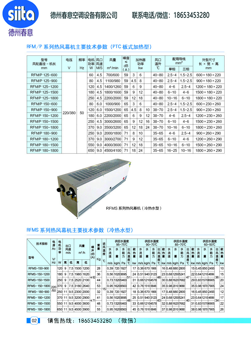 風幕機暖風機參數樣本
