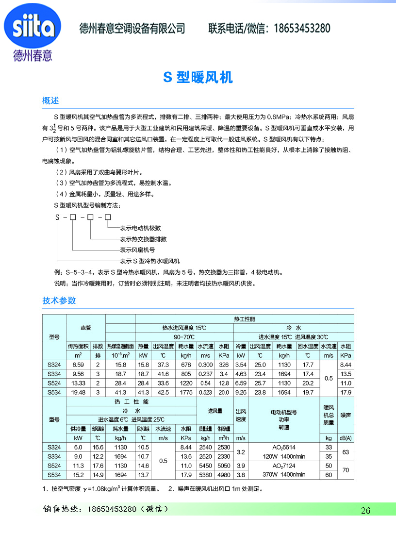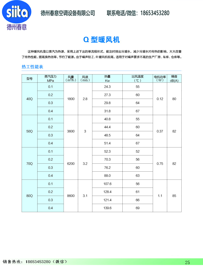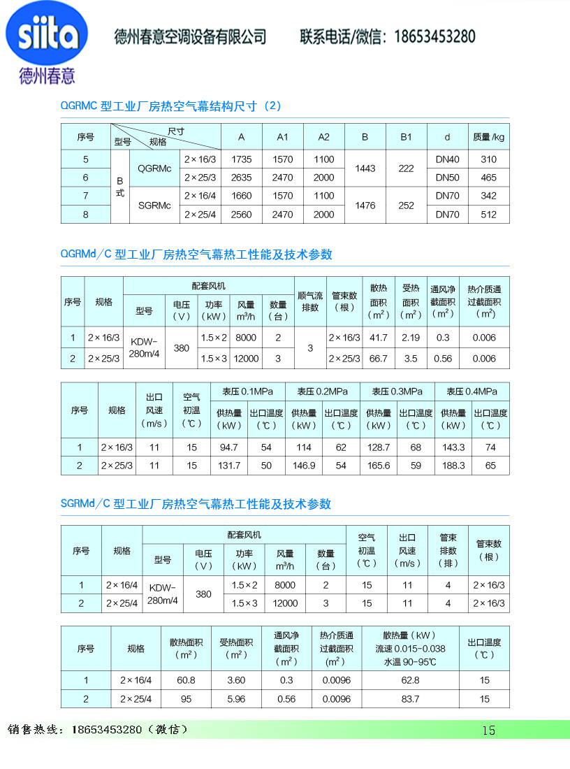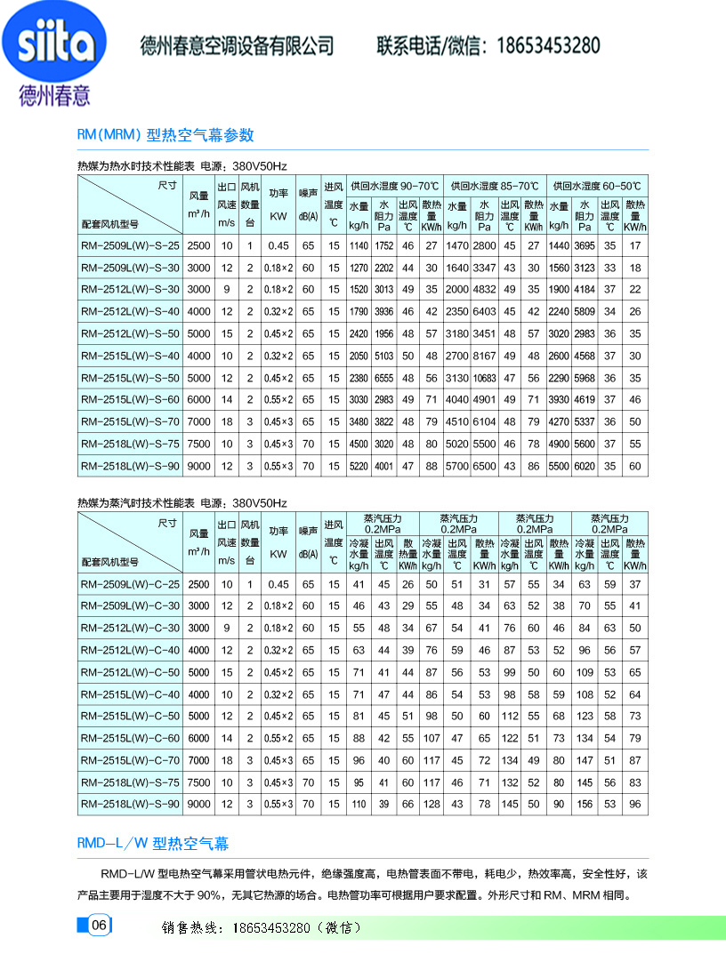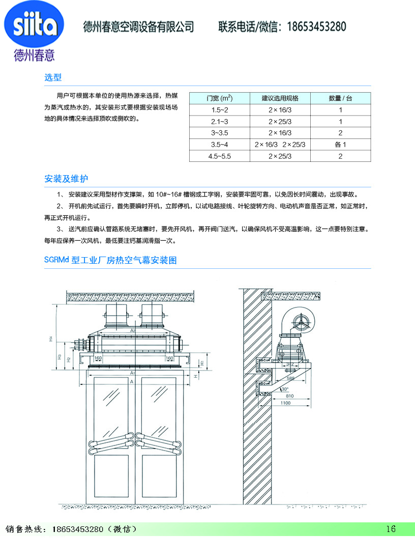 風幕機暖風機參數樣本
