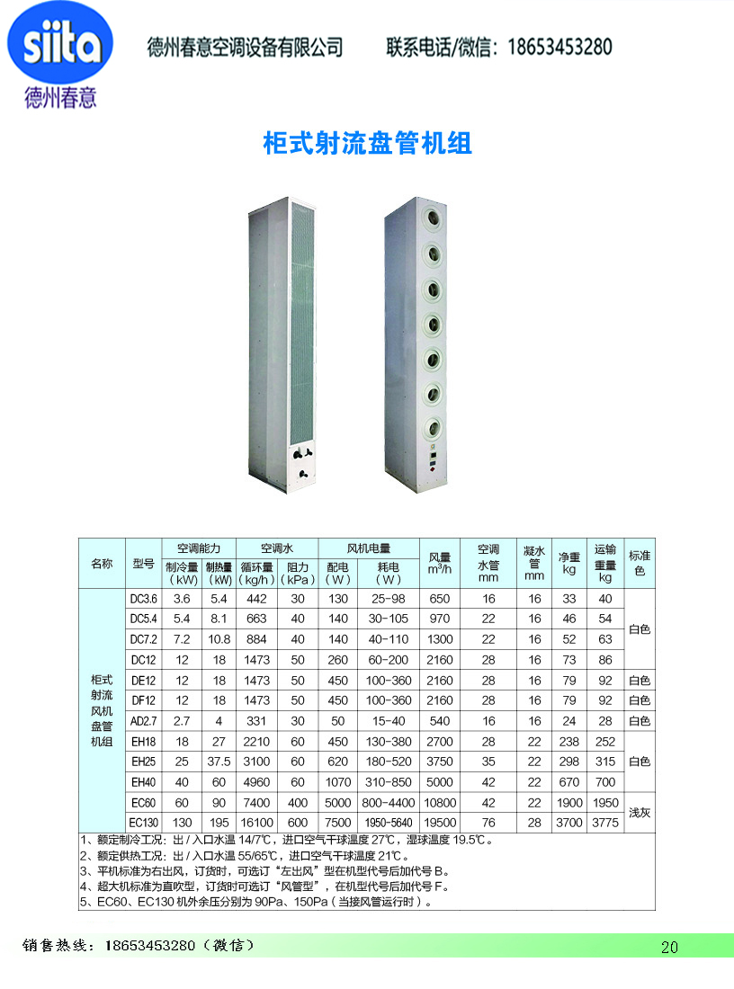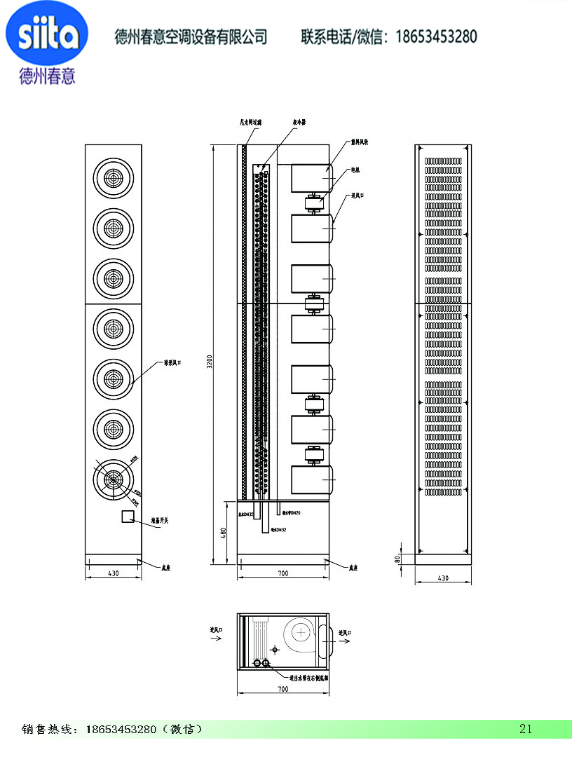 柜式射流盤管機組參數尺寸